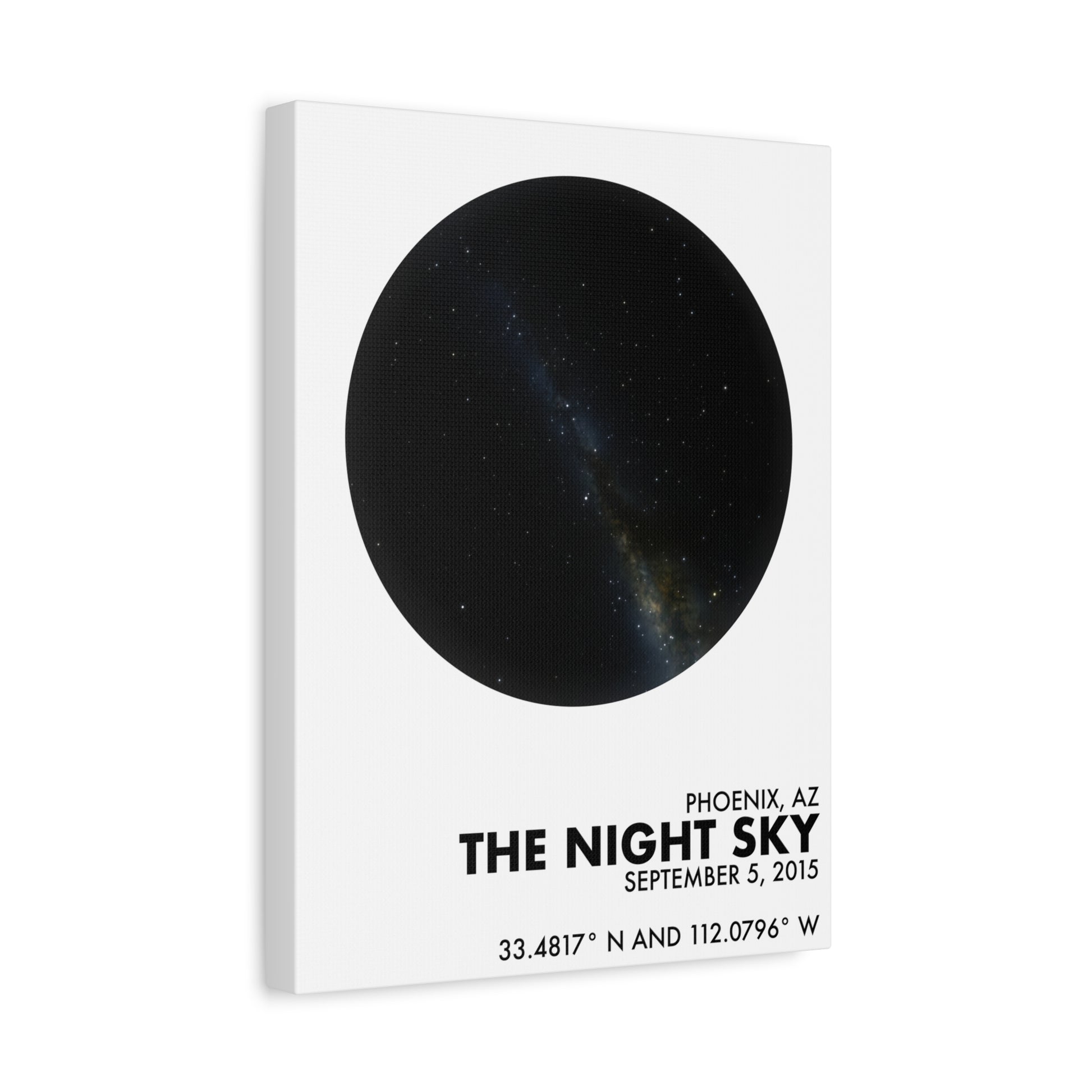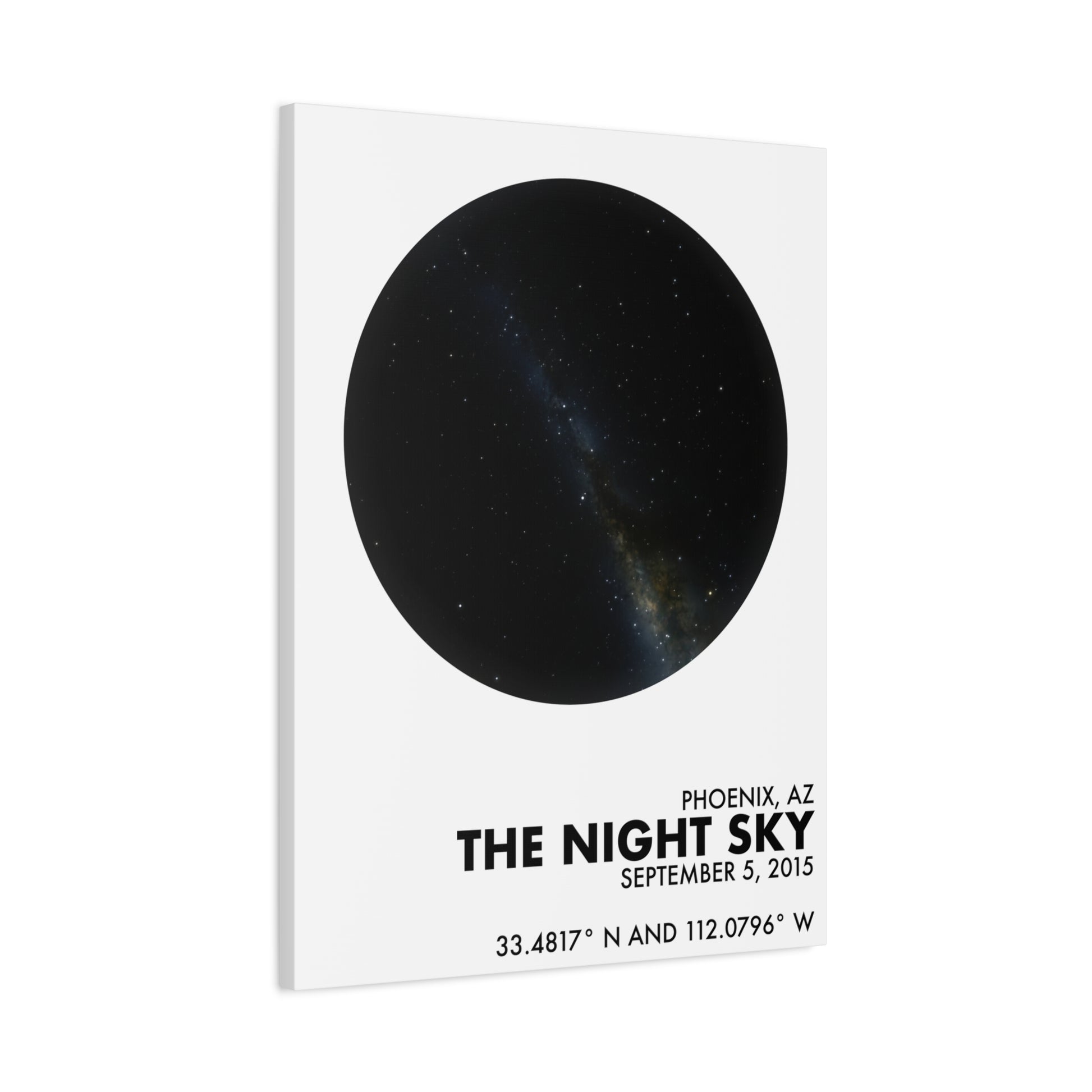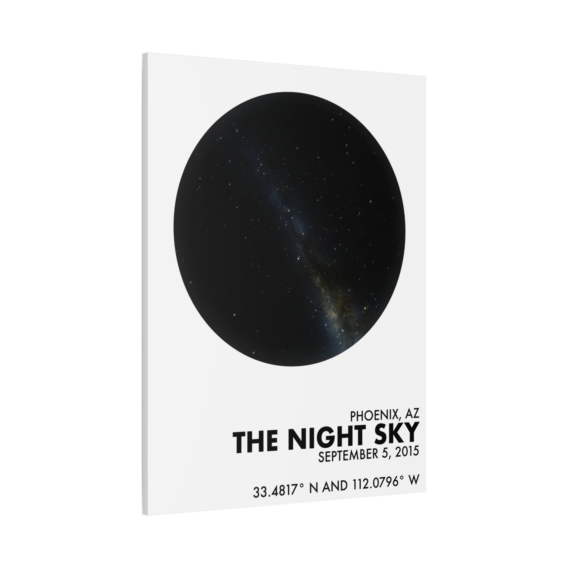 This matte canvas features a custom night‑sky design based on the exact location and date you provide. It’s a simple, modern way to mark a meaningful moment—whether it’s the birth of a child, a wedding day, or the night you first met.