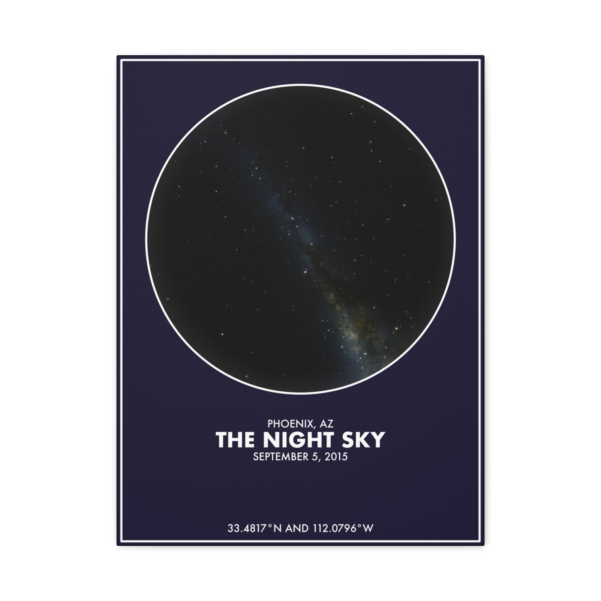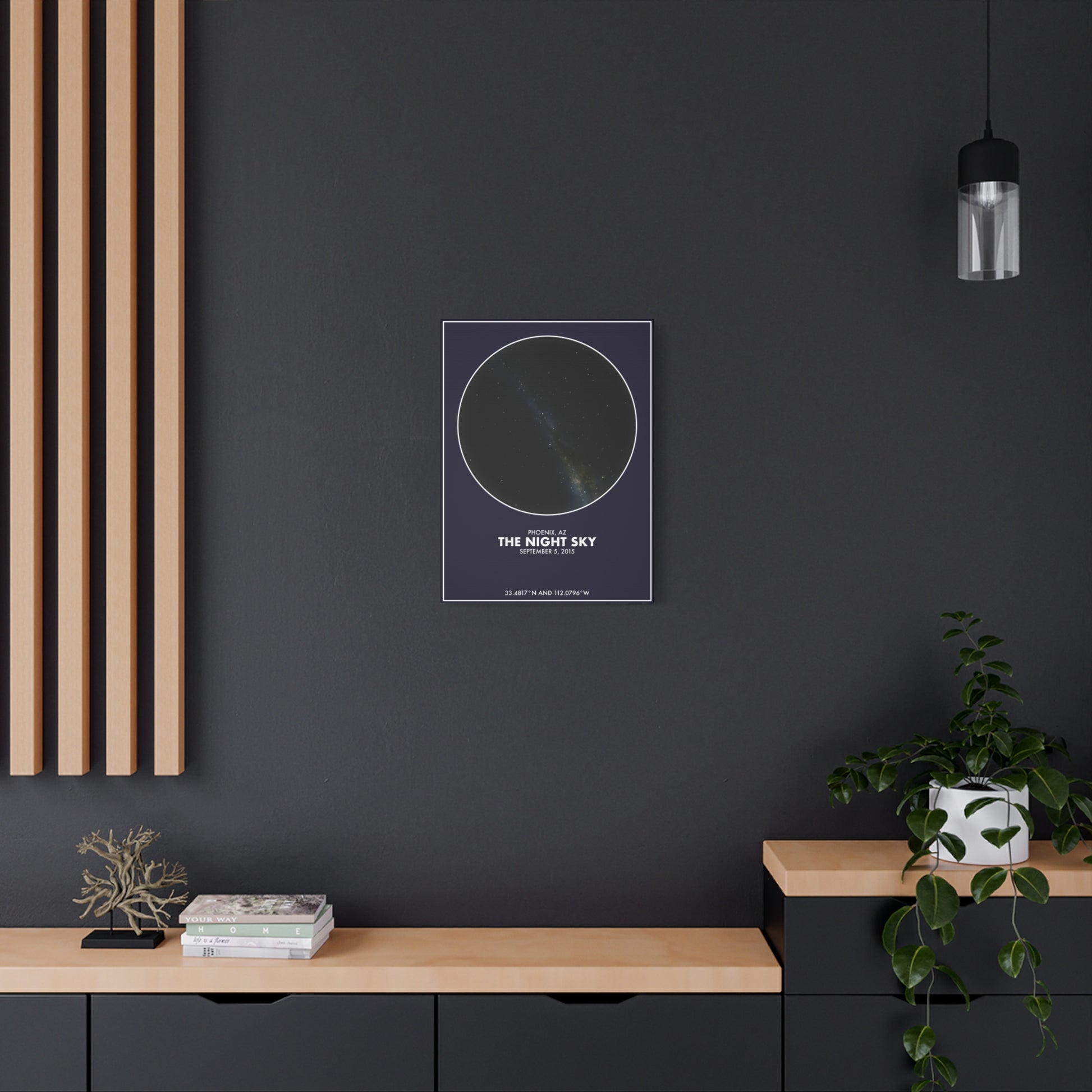 This matte canvas features a custom night‑sky design based on the exact location and date you provide. It’s a simple, modern way to mark a meaningful moment—whether it’s the birth of a child, a wedding day, or the night you first met.